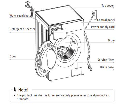 Dimensions (WxDxH): 595 × 465 × 850 mm (including door and water inlet)
