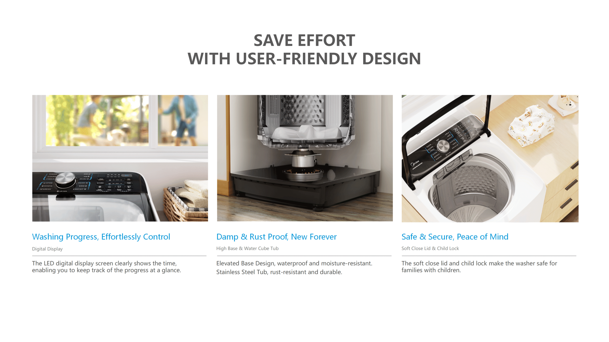 • Auxiliary Functions: Child Lock, Turbo, Tub Clean
