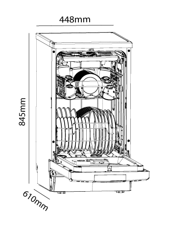- Programmes: 7 (Intensive, Heavy, Eco, Glass, 90min, Rapid, Soak)