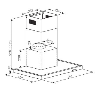 Parmco 600mm Canopy, Slim Box, Stainless Steel, LED