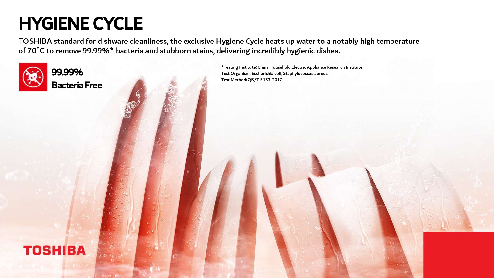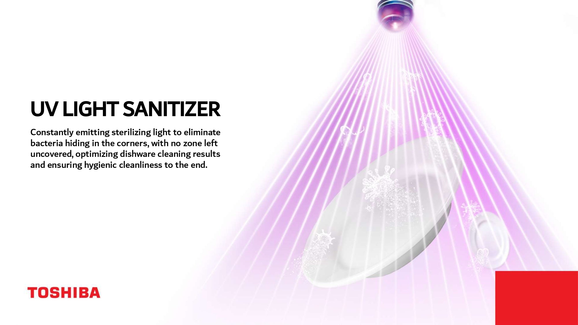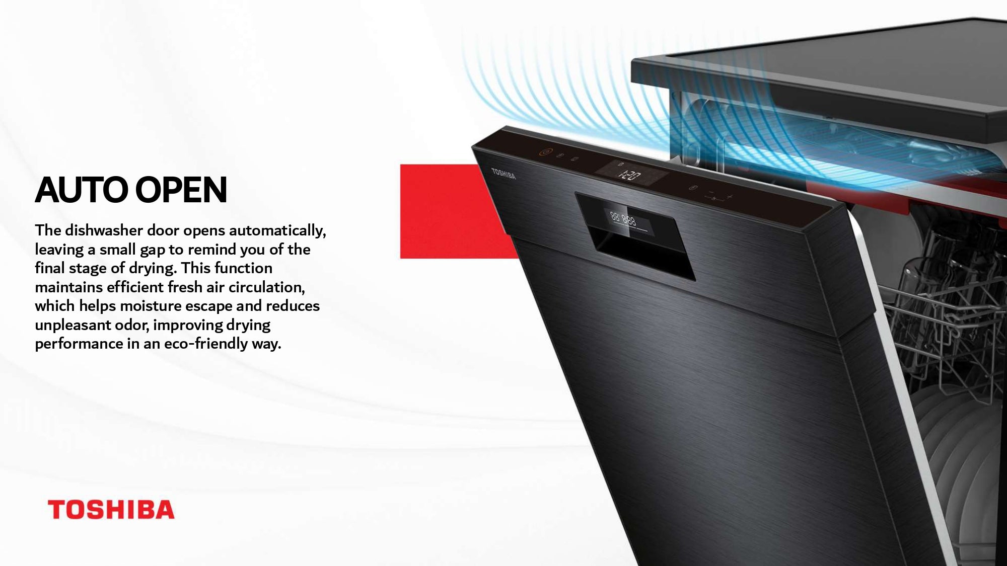 Other Features: 70°C HI-TEMP Hygiene Cycle, UV light sanitizer, Auto open, Anti-bacterial filter, 1–24 hour delay timer, Soil-sensing auto cycle, Half-load wash, Flexible rack system, LED display, Child lock, Self-regulated water leak protection system